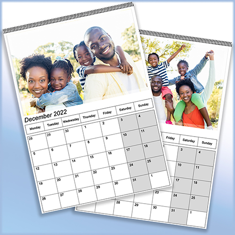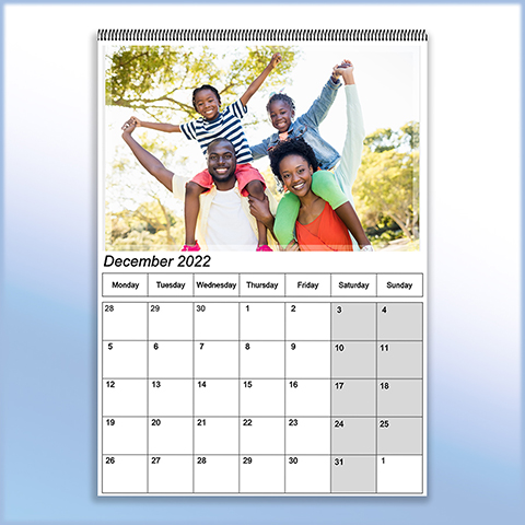 Make every day an important day with our personalised A4 portrait calendars. Our calendars are printed on high quality matte paper and are wiro bound to make them extra sturdy. Designed to fit on a single A4 page, you can choose which image to add to the top half of your calendar page and which day of the week to start your calendar on. Our A4 calendars show one month per page.