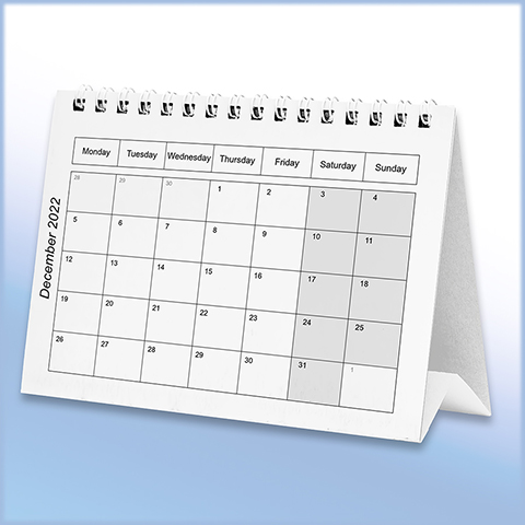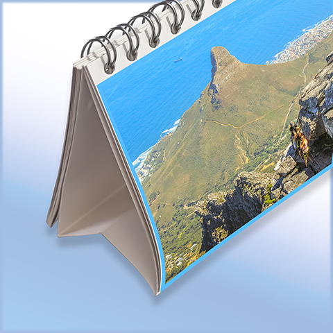 Create fully personalised tent calendars for your desk. Small and lightweight, these calendars take up very little space so they’re perfect for the office. With your favourite pics on one side and the calendar on the other, your tent calendar is sure to make a statement. Tent calendars are ideal for corporate branding because your customers will see them almost every day. Our tent calendars are wiro bound and measure 204mm x144mm.